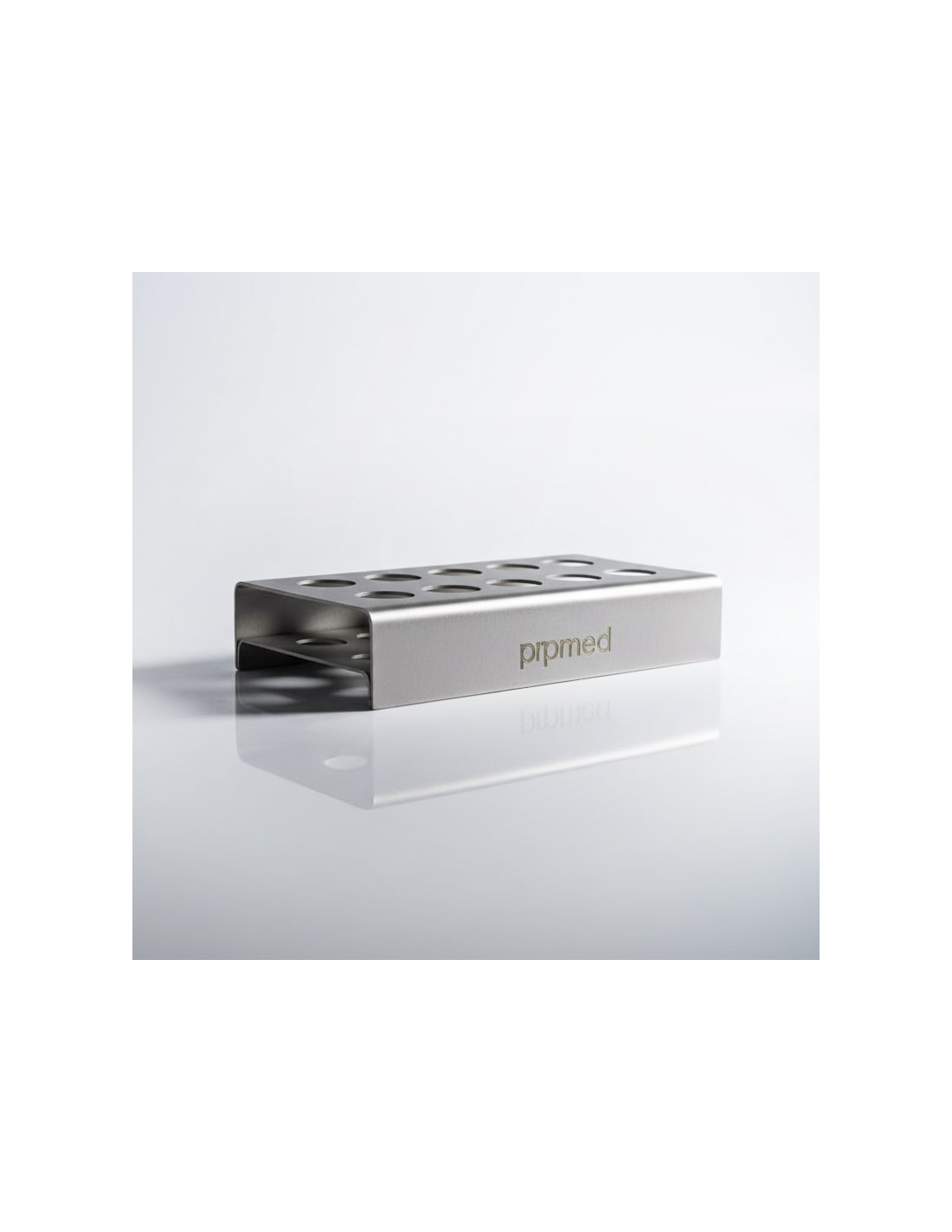 Come il nostro porta-siringhe, anche questo porta-provette viene sottoposto a uno speciale processo di sabbiatura con perle di vetro. Il risultato è un aspetto tecnico e opaco come la seta.